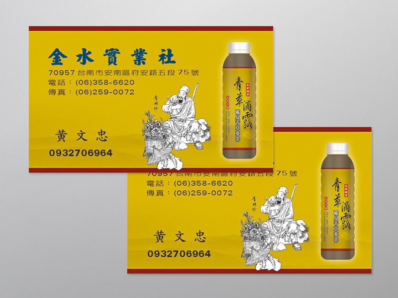 青草茶 是老祖宗的取自天然的智慧,組合成 青草茶 的每一味青草都有其功效;整個設計的方向~自然、傳承,從瓶子的收縮膜開始參與設計,延伸到商品簡介手冊;以白描的李時珍搭配草行書的青草滴露,金黃色底除了讓畫面簡化也呈現商品的珍貴....