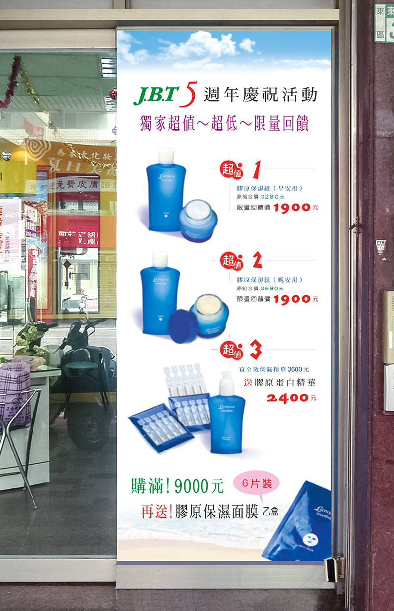 週年慶的促銷海報則以門市鋁門玻璃為張貼處
