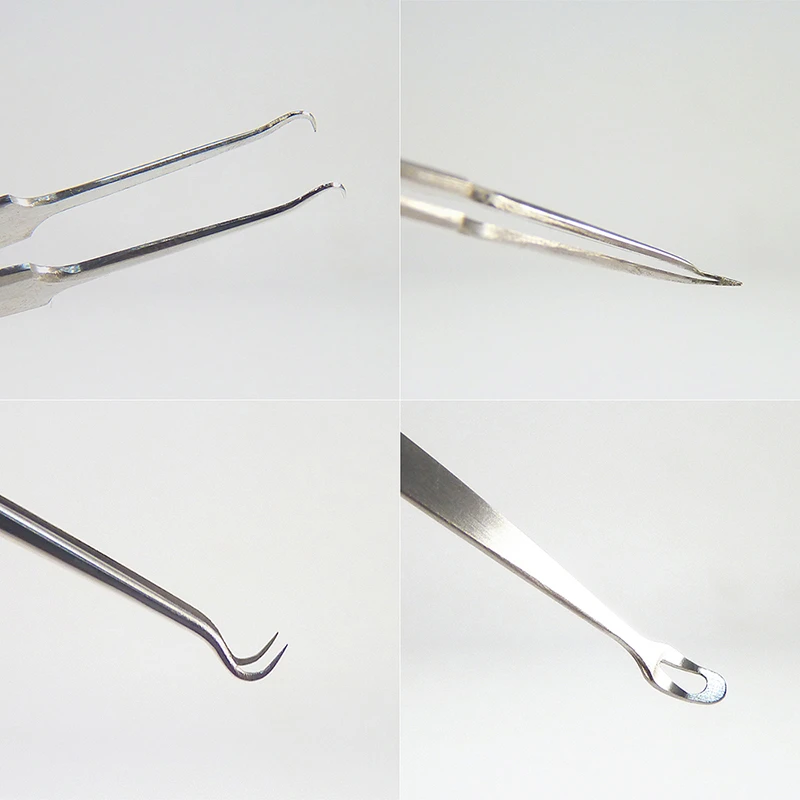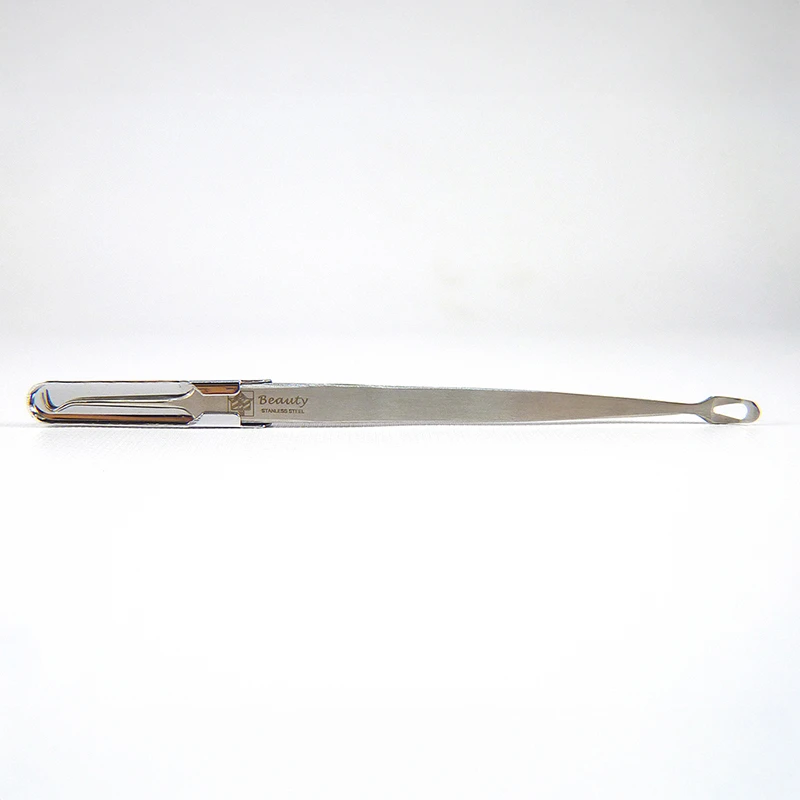 彎鉤粉刺夾~將彎形鑷子尖口向上,彎口放至青春痘之兩側,輕微向下壓後擠出。